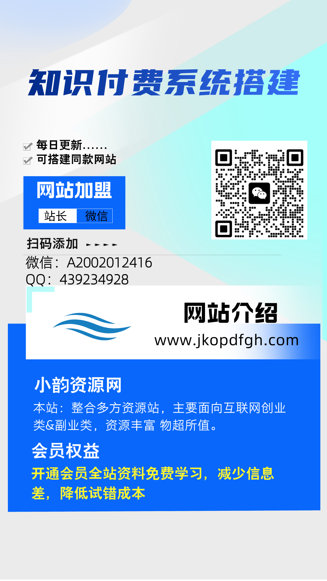 加盟XXX网创,加盟搭建同款知识付费资源网站,实现长期稳定被动收入~